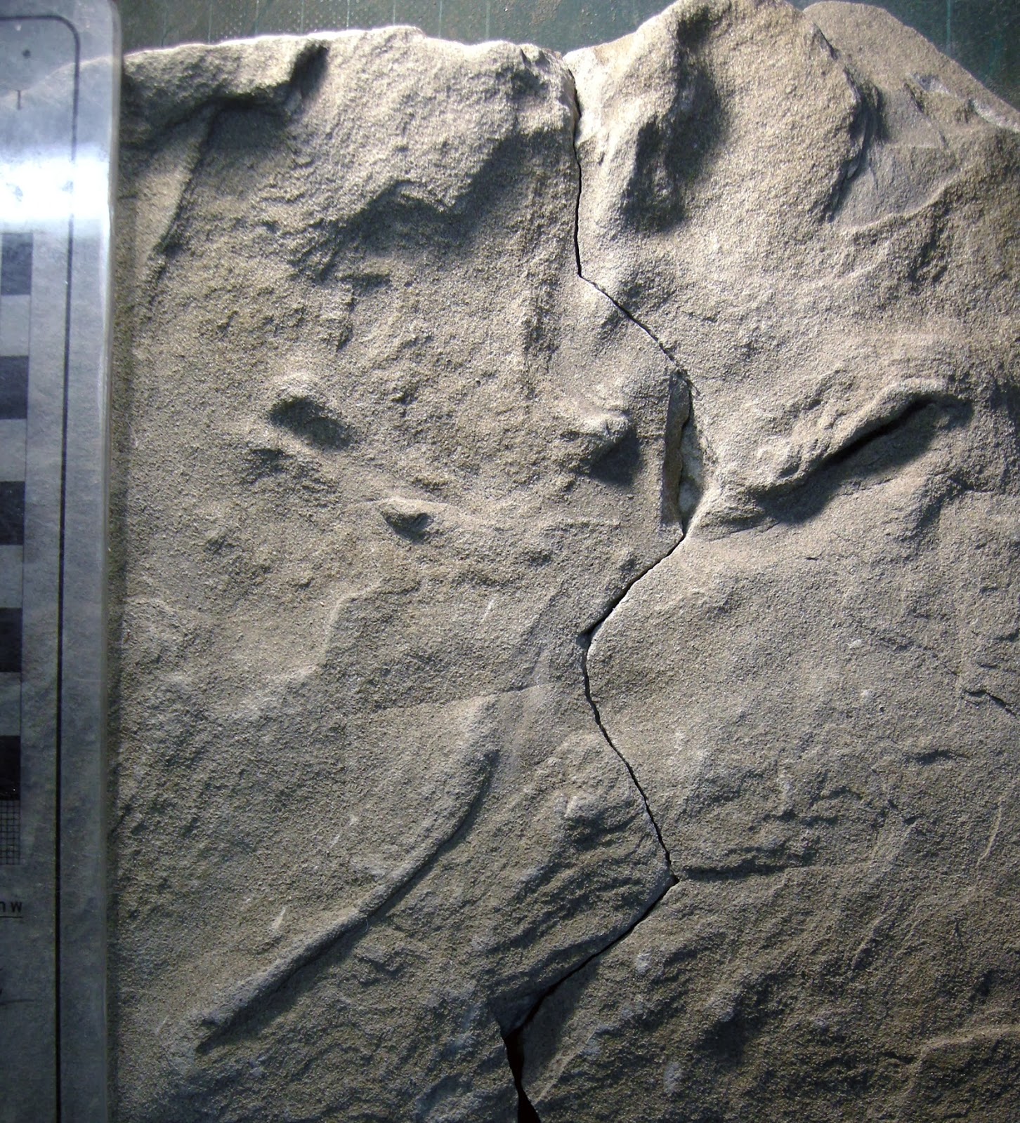 The bird tracks were found on a slab of sandstone. Photo by Alan Tait.
