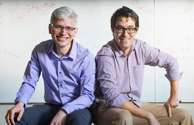 Biophysicist Ilya Nemenman, left, is developing theories about the brain that can be tested in the lab of biologist Sam Sober, right. (Emory Photo/Video).