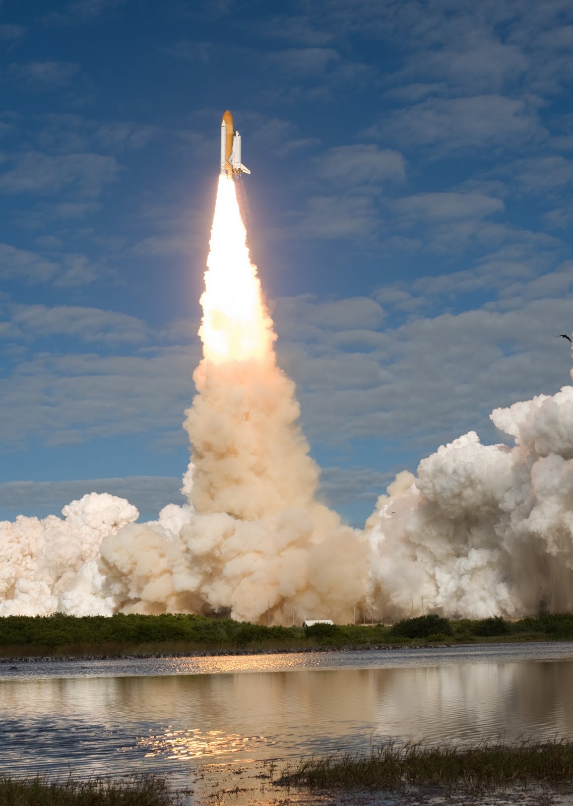 Atlantis launch photo courtesy of NASA.What’s it like to play a grand piano beneath a Saturn V rocket?