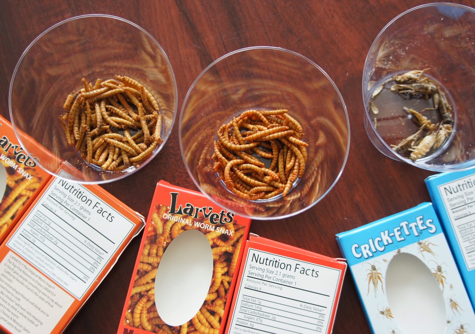 A snack table was laid out with nacho-cheese Doritos, mealworm beetle larvae seasoned with Mexican spices and salt-and-vinegar crickets.